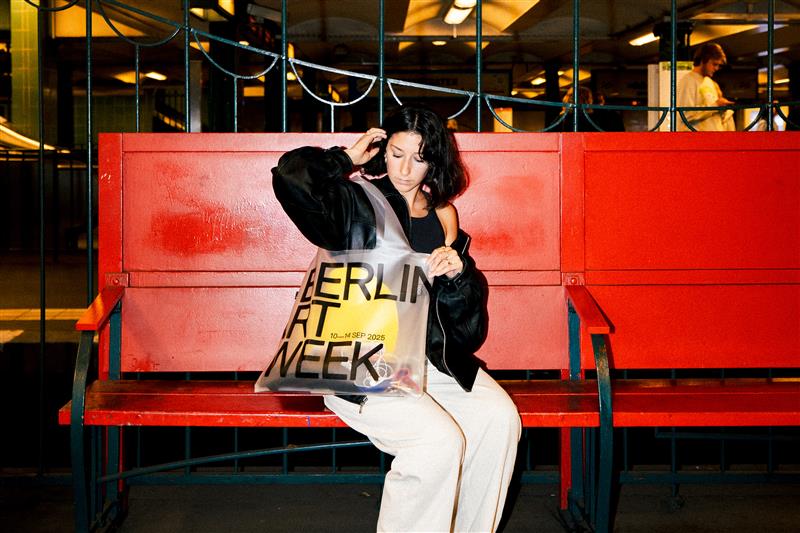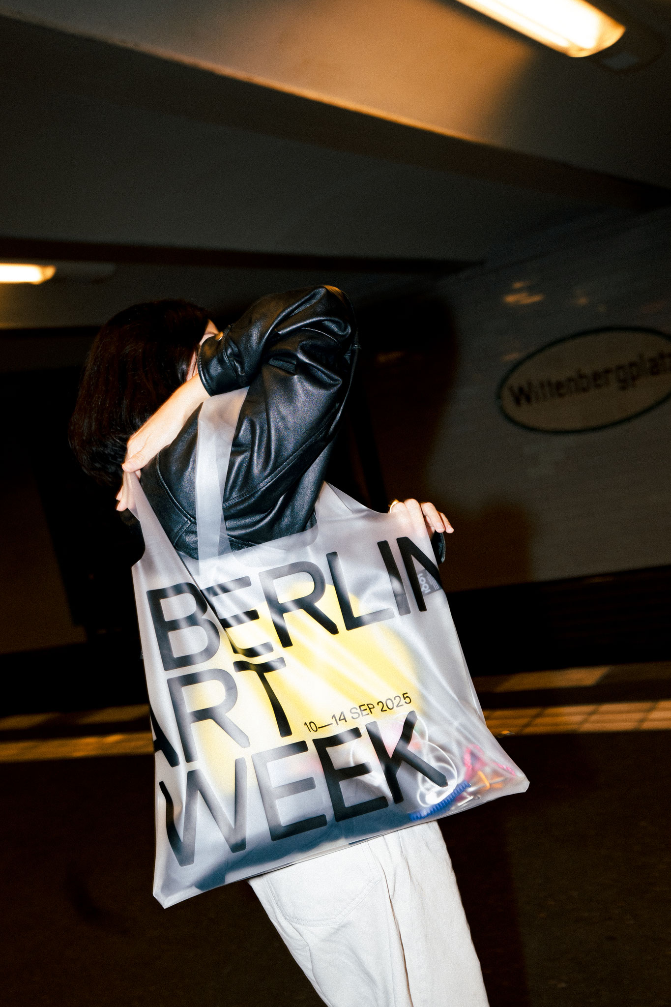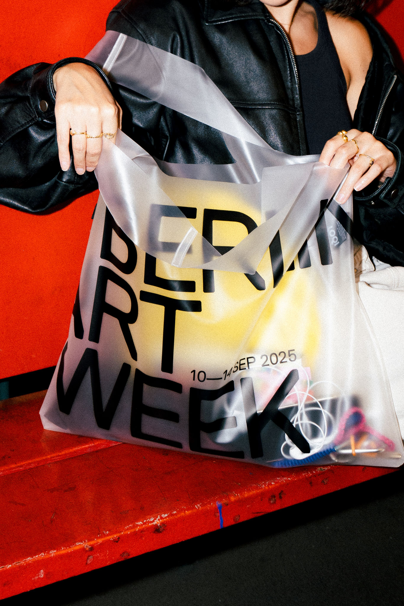 Die limitierte Berlin Art Week Bag, entwickelt in Kooperation mit LOQI. Der transparente Shopper ist wasserabweisend, recycelbar und aus STANDARD 100 by OEKO-TEX® zertifiziertem Material gefertigt. Trotz seines leichten Designs trägt er problemlos bis zu 15 kg. Ein praktischer Begleiter und hübsches Erinnerungsstück an die Berlin Art Week 2025.